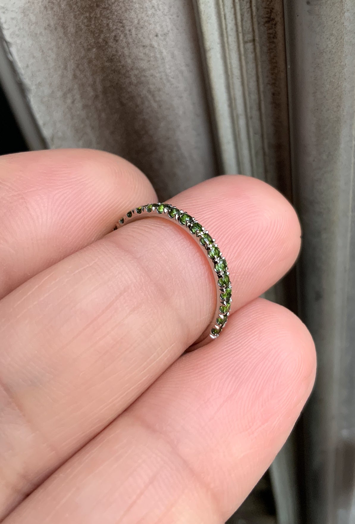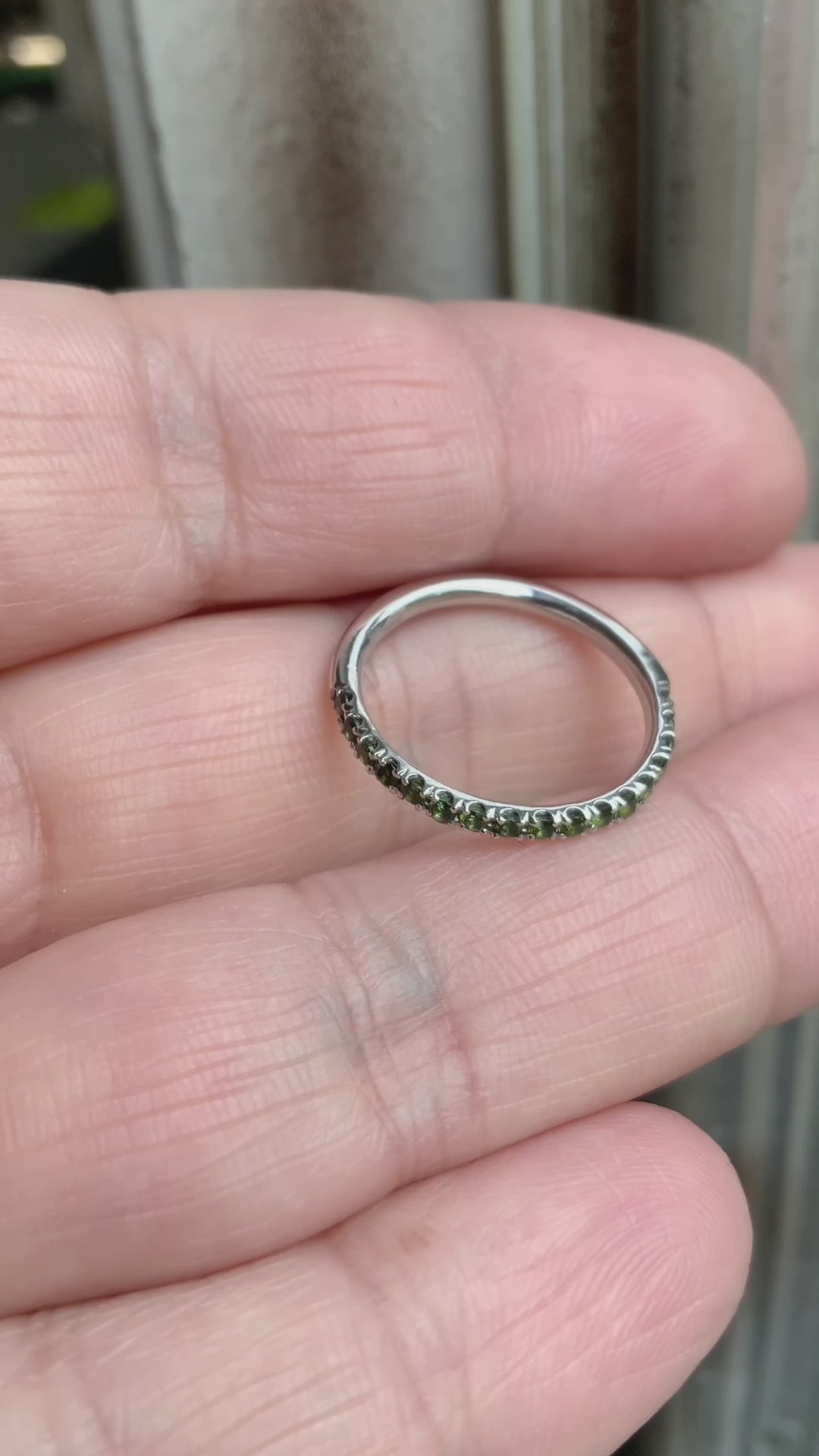 Green Tourmaline Pave Band/ 2mm Half Eternity Stacking Ring/ Tourmaline Wedding Band/ October Birthstone Ring/ Push Present Custom Jewelry